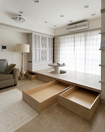 有了榻榻米,你再也不怕家里雜物多了,而且這些收納空間都是封閉式設(shè)計,不管什么時候里面的東西都是干干凈凈的。