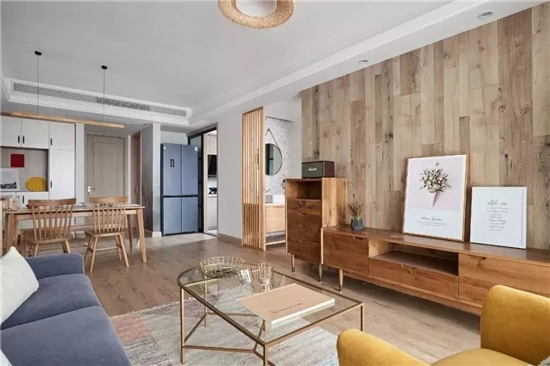 如果在吊頂造型方便不方便做區(qū)分的話,也可以通過在墻面的造型、用材、顏色等方面去做區(qū)別,讓客餐廳空間相互打通又保持獨立感。