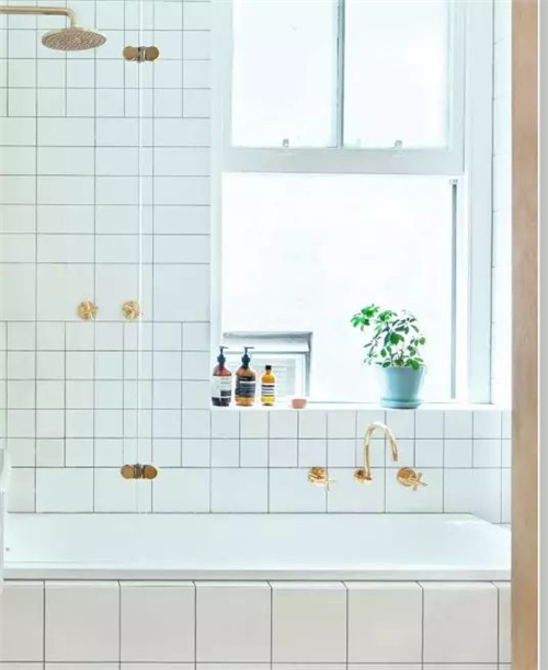 浴室鋪了白色方格瓷磚