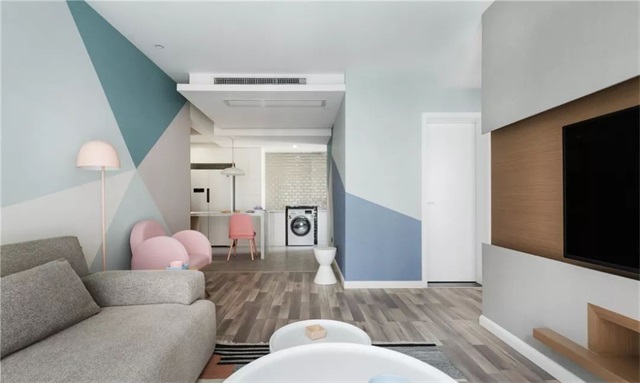 糖系的彩色可不是大紅大紫大綠,莫蘭迪這顆高級糖,就非常適合甜甜的糖系。增加色彩點綴。糖系的墻面、地板、基礎家具其實都可以很平庸,但是一定會有色彩點綴。