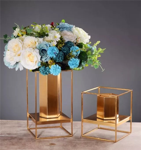 金屬材質(zhì),棱角分明、冷冷的色調(diào),酷感十足,金屬材質(zhì)的花器需要搭配暖色系的花材和背景,剛中帶柔,一種別樣的生機(jī)。