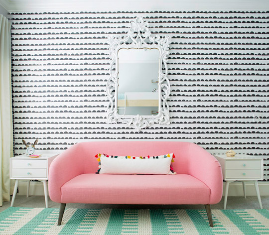 粉色的沙發(fā),在層次感十足的黑白墻壁映襯下,奪人眼目。清新質(zhì)樸,時(shí)尚簡(jiǎn)約,三兩個(gè)簡(jiǎn)單設(shè)計(jì)便輕松營(yíng)造出現(xiàn)代主義下的空間感。