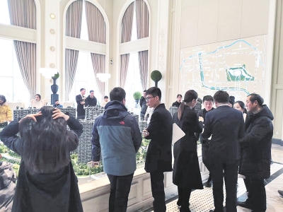 2月18日下午,記者在經(jīng)開區(qū)某品牌樓盤看到,售樓部簽約處已經(jīng)坐滿了等待的客戶。